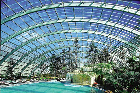 第一次工業(yè)革命后,18世紀(jì)倫敦世博會,英國為了展示其工業(yè)發(fā)達(dá)程度建造了一個占地8萬平方米的展覽館。其主角是純鋼結(jié)構(gòu)的玻璃建筑,是早期鋼結(jié)構(gòu)陽光房的顛峰之作。在這個階段鋼材的大量生產(chǎn)運(yùn)用,使早期陽光房的覆蓋面進(jìn)一步擴(kuò)大。我們可以在美國故事片《音樂之聲》《時光機(jī)器》等影片中找到鋼結(jié)構(gòu)陽光房。