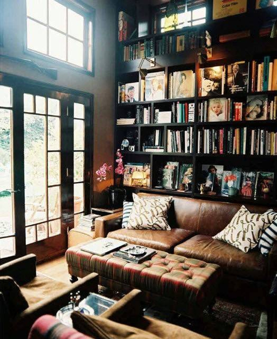 歐美風(fēng)格裝修設(shè)計:大大的書架是整個房間最亮眼的作品,古典式的家具配上現(xiàn)代感超強(qiáng)的條紋,一點(diǎn)都不顯古板,反而透露著濃濃的書香味。