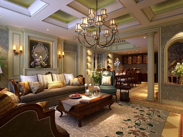歐美風(fēng)格裝修設(shè)計:開放式的客廳設(shè)計,客廳和餐廳完美地融合在一起,空間上并不會給人擁擠的感覺,反而顯得大氣十足。客廳的擺設(shè)搭配地板和各種家具,顯得溫暖舒心,墻面的裝飾和吊頂設(shè)計,讓客廳的裝飾顏色的造型合理搭配,高貴華麗的感覺不言而喻。