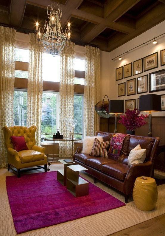 歐美風(fēng)格裝修設(shè)計:酒紅色的沙發(fā)配上原木地板,溫馨的感覺別有一番滋味。