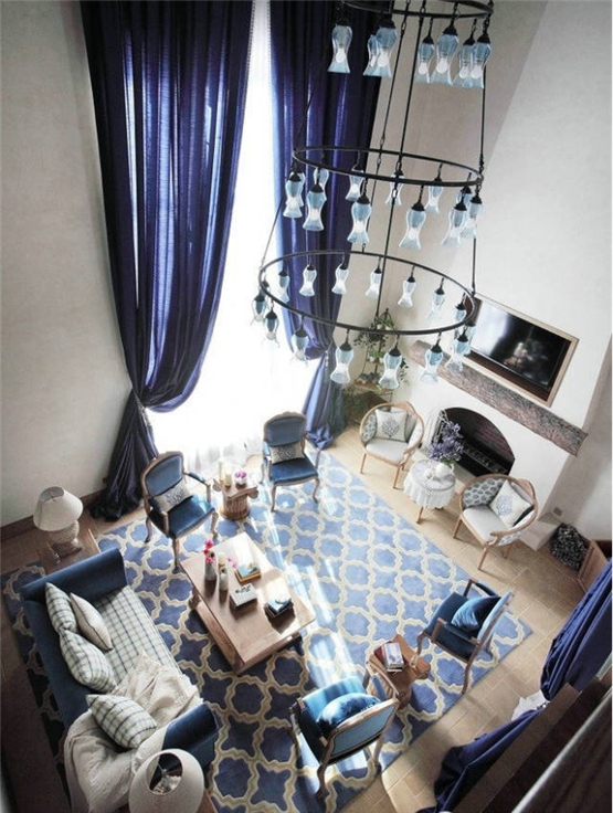 歐美風(fēng)格裝修設(shè)計:藍(lán)色的冷調(diào)子,給人一種孤傲的深沉,經(jīng)過排列組合的設(shè)計,卻顯得清新自然。