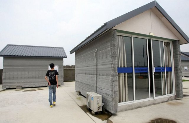 8 月 21 日,上海,10 幢 3D 打印建筑在上海張江高新青浦園區內正式交付使用,作為當地動遷工程的辦公用房。這些 " 打印 " 出來的建筑墻體是用建筑垃圾制成的特殊 " 油墨 ",按照電腦設計的圖紙和方案,經一臺大型的 3D 打印機層層疊加噴繪而成,10 幢小屋的建筑過程僅花費 24 小時。