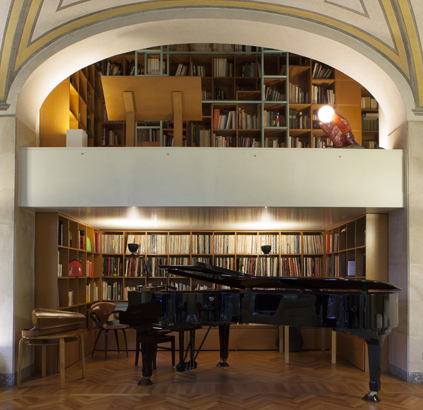 Bellini愛米蘭,愛這座城市的文化和街道。這位意大利建筑大師的家就在米蘭市中心附近,一座建筑物的19樓。整個家的顏色就是典型的意大利風格,最引入注目的是書房——這里簡直就是一座圖書館,高達九米的書柜放滿了各式書籍。